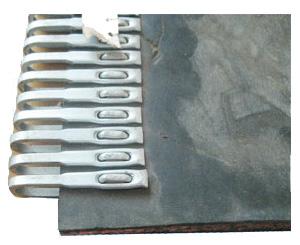 輸送帶鋼扣也叫皮帶扣,鋼扣的種類很多,常見的輕型輸送帶鋼扣有針扣、狼牙扣、蝴蝶扣、拉鏈扣等。